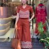 Orange Color EmbroideOrange Cotton Co-Ord Set For Women’s and Girls Size-L